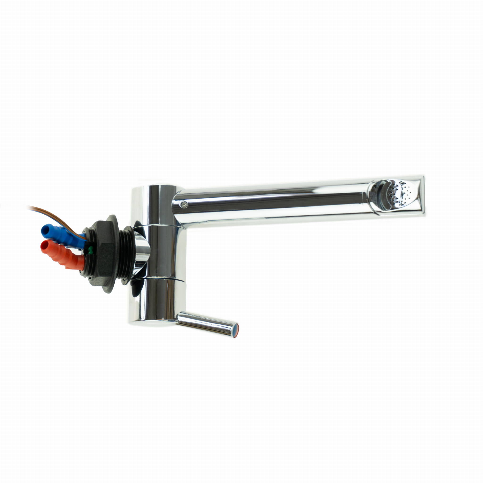 ➡️ Kran posiada mikrowłącznik w pokrętle, który uruchamia pompkę wodną.